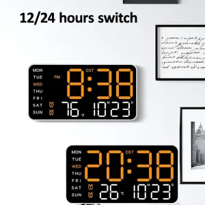 Extra Large Digital Wall Clock with LED Display with Date, Temperature, Timer for Living Room, Bedroom, Gift for Seniors