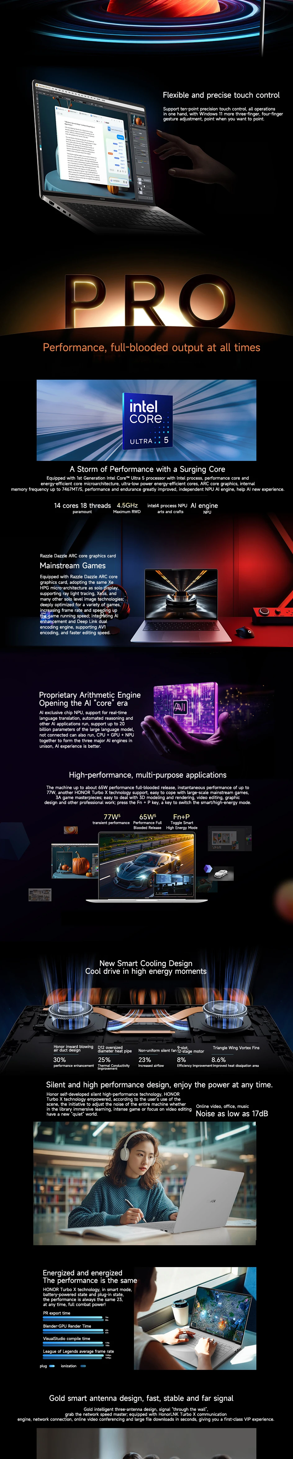 Honor Laptop MagicBook Pro 14 2025 14.6-inch Ultra5 125H 16GB/24GB 1TB/2TB 120Hz 3.1K OLED screen Intel® Arc™ graphics laptop